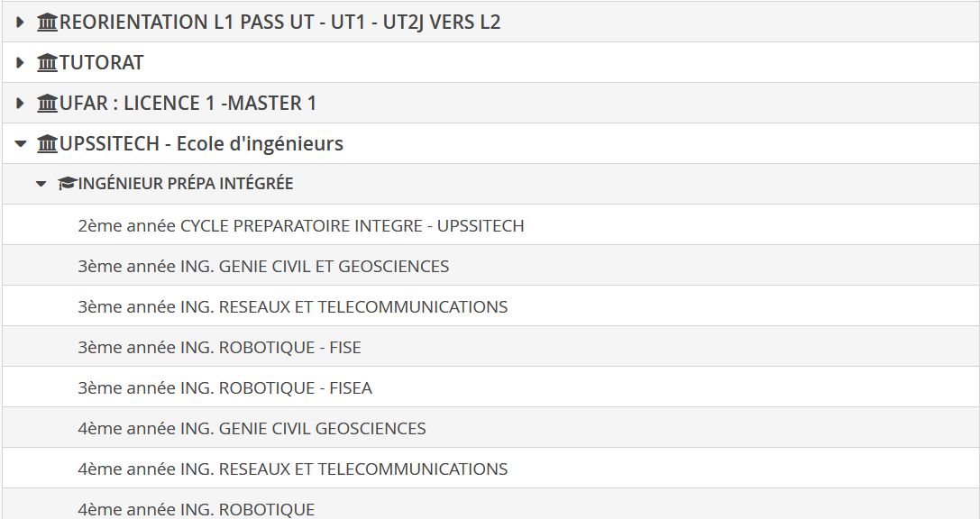 - Si vous souhaitez candidater en seconde année de cycle ingénieur (Cycle préparatoire intégré accessible en ayant validé 1 année minimum de formation après le Bac), sélectionnez le libellé « 2ème année CYCLE PREPARATOIRE INTEGRE – UPSSITECH ».